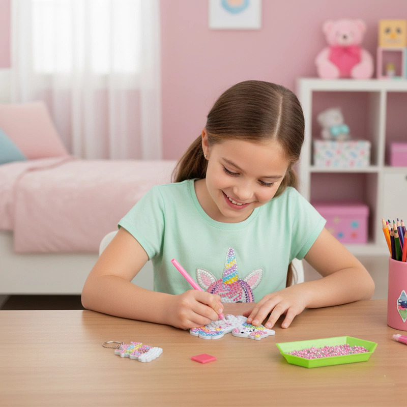 - Juego Creativo: Decora colgantes usando la técnica Diamond Painting con gemas.